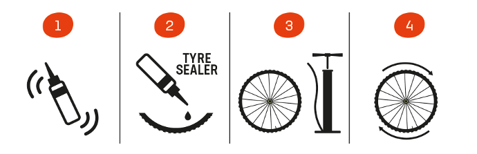 Faites tourner la roue plusieurs fois et secouez-la légèrement d’un côté à l’autre pour permettre au liquide de bien se répartir sur toute la surface intérieure du pneu. Cela garantit une étanchéité immédiate en cas de fuite.